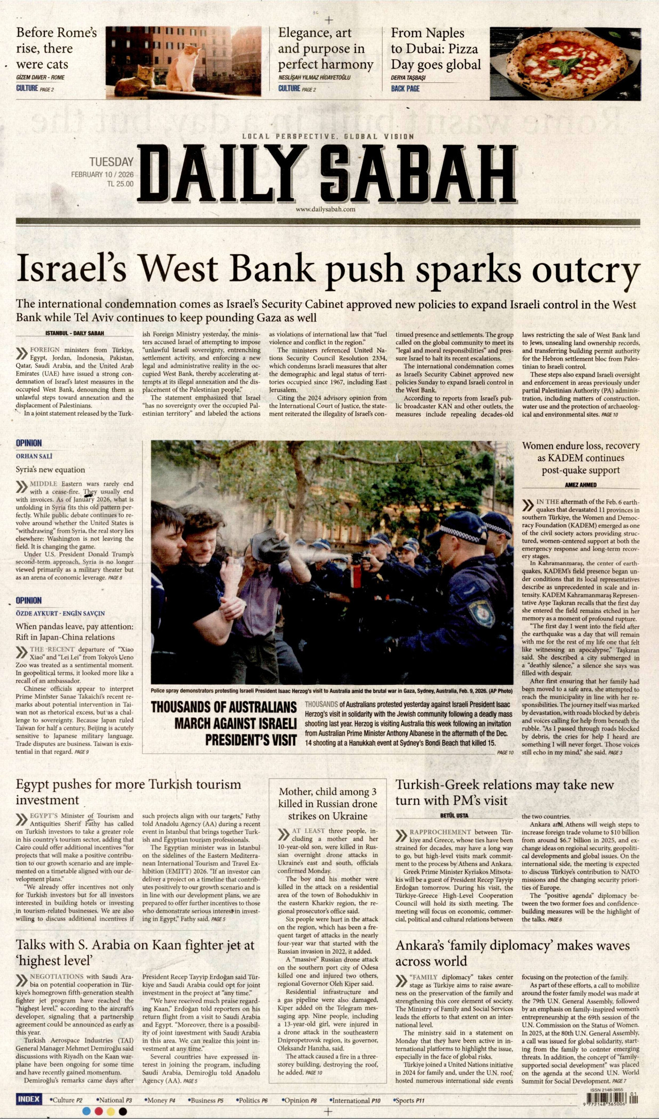 DAİLY SABAH Gazetesi 10 Şubat 2026, Salı Günü Manşeti