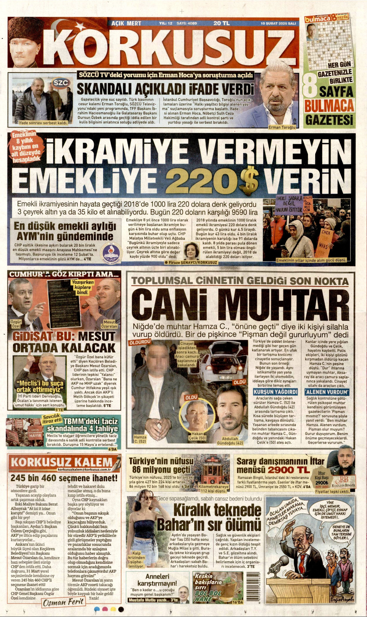 KORKUSUZ Gazetesi 10 Şubat 2026, Salı Günü Manşeti